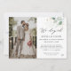 Nous avons fui le faire-part pour surprendre amis et famille avec la nouvelle de votre mariage et les informer de vos coordonnées de réception à venir. Juste marié faire-part caractéristiques "nous avons fui" dans un script amusant et une branche verdoyante d'eucalyptus avec des éléments d'or. Customisez avec votre photo.