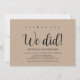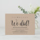 Oui, nous pouvons! Nous l'avons fait! Cette carte d'invitation de mariage rustique kraft est parfaite pour votre réception de mariage et la fête de célébration après le mariage. Ajoutez vos détails dans une police / lettrage noir assorti.