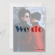 Une image d'automne urbaine, de la mariée et du marié à être, décore la carte plate. Il fait de belles papeterie mariage à l'invitation à un mariage d'automne. Échangez la photo pour qu'elle soit la vôtre, et modifiez le remplissage et la couleur du texte pour qu'elle corresponde. Pour toute demande de renseignements sur la conception et la personnalisation de produits, veuillez nous contacter à l'adresse https://kbmd3signs.com/contact/.