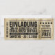 nouvelle carte d'invitation pour les 40 ans avec le design d'un billet antique avec code-barres.