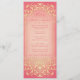 Ces menus mariages élégamment fins, aux tonalités époustouflantes d'or pâle resplendissant et de délicieux rose de framboise, sont un mélange de goût de sensibilités Art Nouveau et Victoriennes, avec un cadre soigné de jolies tourbillons et de délicats défilement, et texte en écriture formelle et de serif classique et polices de blocs. Le libellé de la faire-part de mariage est entièrement personnalisable. Personnalisez le dos avec vos informations de réception et/ou de réception pour économiser les coûts sur les cartes RSVP et Réception séparées, ou supprimez ces champs pour laisser le dos vide.