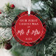 Cet élégant ornement photo de vacances a une forme ronde avec un classique tartan rouge et un texte qui dit "Notre premier Noël en tant que Mr. & Mme" et l'année. Le côté arrière accueille une photo. Un merveilleux cadeau de vacances pour tous les jeunes mariés, y compris vous-mêmes!