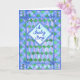 Une jolie carte de félicitations pour un bébé avec un motif patchwork en forme de courtepointe en bleu, lilas et vert, peint à la main par Judy Adamson. L'accueil intérieur, que vous pouvez customiser, est "Félicitations !".