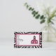 Un carte de visite de professeur comportant le logo de l'école rose entourée par une frontière d'impression de zèbre et des accents roses. Personnaliser avec votre propre information. Le rédacteur peut être employé pour changer la taille de la police, le style, et la couleur si vous souhaitez.