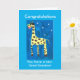 Félicitations ‘vous avez un nouveau petit-fils ' texte sur une photo d'un enfant girafe peinte.