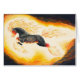 Un cheval flamboyant saute hors des nuages remplis par suie avec la crinière, la queue et les sabots sur le feu. Ce morceau a été fait dans les colorants et des crayons de couleur avec palette noire et jaune/orange.