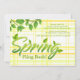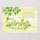Célébrez le printemps dans le style de ce design contemporain. Il comporte le mot "printemps" avec des accents de feuilles vertes contre un arrière - plan ensoleillé jaune et blanc plaid. Bien adapté comme alternative à une invitation de Pâques.<}br/>La carte est facile à customiser avec votre libellé, police, couleur de police, options de forme de papier et choix de six types de papier.