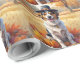 Ein Aquarellbild eines fröhlichen Hundes inmitten eines Haufen lebendiger Herbstlaub, umgeben von winzigen Kürbissen und verstreuten Eichhörnchen. Der Hund trägt einen kleinen Pilgerhut und strahlt vor Freude aus, um den Geist des Erntedanks zu erfassen. Im Hintergrund sorgen weiche Erntefelder und goldfarbene Bäume für eine friedliche Landschaft. Die sanfte Struktur und die warmen, gedämpften Herbsttöne verleihen der Szene ein gemütliches, nostalgisches Gefühl, das perfekt ist, um die Schönheit der Saison zu feiern.