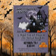 Maison fantôme et hantée Halloween Invitation avec chauves-souris et citrouilles sur une nuit de lune sombre.