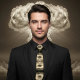 auf schwarzem hemd eine attraktion. die druckqualität ist hervorragend, jedoch nicht zentriert wie in der vorlage, gibt der krawatte aber einen noch indiviuelleren touch