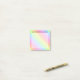 Diese Sticky-Notiz enthält ein Muster aus pastellfarbenen Regenbogenstreifen und einen Platz an der Spitze, um mit einem Namen oder einer anderen Nachricht zu personalisieren.