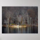 Eine Winterlandschaft, die sich im eisgestummten Wasser des Nuklearen Sees Pawling, NY widerspiegelt.