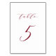 Table 5. Élégante carte de numéro de table avec écriture minimaliste rouge. Ce numéro de table rouge et blanc est parfait pour les mariages, les remises de diplômes, les baby showers, les fêtes de mariage et autres événements. D'autres numéros et couleurs sont disponibles.