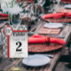 Numéro de table à motif damassé noir et argent ave