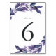 Les élégantes cartes de numéro de tableau botanique comportent des vaporisateurs de feuilles botaniques bleus et violets animés entourant votre numéro de tableau. Le design se répète à l'envers. Coordonnée avec notre collection d'événements Foliage Violet Abondant.