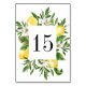 Numéro De Table Aquarelle Citrons et fleurs Mariage d'été