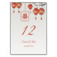 Numéro De Table Aquarelle rouge lanternes Mariage chinois