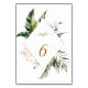 Cette carte de numéro de table mariage présente un feuillage tropical vert aquarelle, une feuille de palmier, une feuille de bananier avec un cadre en diamant doré. Il est parfait pour une plage, un été ou un mariage de destination. >>> Découvrez l'ensemble de la collection >>> https://www.zazzle.com/collections/tropical_foliage_gold_collection-119316977990783186