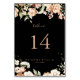 Ce numéro noir de table royale à fleurs mariage est parfait pour un mariage moderne. Le design est composé de fleurs élégantes, roses, rousses et blanches aux feuilles vert émeraude. Il s'agit d'un numéro de table recto-verso. Ajoutez chaque numéro de table dont vous avez besoin à votre panier individuellement.