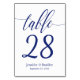 carte de numéro de table mariage en calligraphie bleu marine. Parfait pour un mariage chic et élégant. La couleur arrière - plan blanche peut être customisée avec l'outil en ligne des options de couleur arrière - plan zazzle. Pour un look cohérent, visitez mon magasin pour voir l'ensemble des collections de numéros de table mariages. Oeuvre dessinée par Calani May.