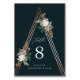 Carte de numéro de table fleurie boho avec belle pyramide d'or rose avec botaniques vintages asymétriques.
