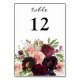 Habille tes tables de mariage ou de fête avec cette carte chic bordeaux & floral Table Number Card.