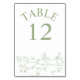 Numéro De Table Branche avec fleurs vert sauge mariage monochrome