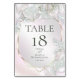 Carte de numéro de table de mariage | | Fond luminescent à paillettes de perle rose brumeux avec feuilles de rose lumineuses, feuilles d'eucalyptus, baby's breath et scintillements. Ce design est particulièrement beau sur le papier à paillettes de perle. Personnalisez le texte, le style de police, la couleur et la taille. Nous avons créé ce modèle pour vous permettre de le personnaliser facilement avec vos propres informations. Cela fait partie d'une suite complète de papeterie de mariage avec papeterie assortie pour mariage, baby shower et autres événements. Œuvre d'art originale © par WhimsicalArtwork™.