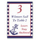 Hiver les voiles il est temps de jouer Bunco. La carte de table Bunco à thème nautique comprend une ancre et un thème rouge, blanc et bleu. Vous pouvez modifier le texte pour faire des cartes de table Bunco de 1 à 100! Expliquez Matey ! La carte de table peut être utilisée pour les mariages, anniversaires, anniversaires, événements caritatifs, collectes de fonds, ventes aux enchères et autres festivités avec un thème maritime ou nautique.