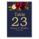 Numéro De Table Burgundy Floral Navy Bleu Élégant Script