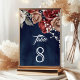Numéro De Table Burgundy Red Roses Floral Navy Blue Wedding