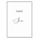 Ce délicat tableau de calligraphie noire six numéro de table est parfait pour un mariage moderne. Le design minimaliste romantique présente une belle et élégante typographie noire sur un arrière - plan blanc au look épuré et sobre. La carte s'imprime à l'avant et à l'arrière (double face). Les autres numéros de tableau de la collection sont vendus séparément.