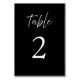 Accueillez vos invités à leurs tables désignées avec nos cartes de numéro de table de mariage modernes et élégantes. L'élégante écriture manuscrite blanche et les numéros de style classique sur fond noir sont une option parfaite pour les mariages formels. Vous pouvez également changer les couleurs du texte et du fond pour correspondre à votre thème. Rendez votre journée spéciale encore plus mémorable avec ces magnifiques cartes de numéro de table. Commandez les vôtres dès aujourd'hui et ajoutez une touche d'élégance à votre décoration de mariage !