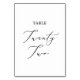 Ce délicat tableau de calligraphie noire vingt-deux numéro de table est parfait pour un mariage moderne. Le design minimaliste romantique présente une belle et élégante typographie noire sur un arrière - plan blanc au look épuré et sobre. La carte s'imprime à l'avant et à l'arrière (double face). Les autres numéros de tableau de la collection sont vendus séparément.
