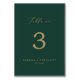 Numéro De Table Calligraphie Or Délicate | N° tableau vert