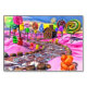 This is my Candyland design-a gingerbread house in a pink candy landscape with colorful lollipops, gummy bears, sugar canes, pralines and cotton candy by a chocolate road.