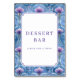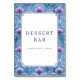 This elegant wedding tabletop sign features a symmetrical layout with a central white space framed by intricate floral patterns in shades of blue and purple. The design showcases stylized flowers resembling tulips or peonies, arranged in a harmonious border that adds depth and sophistication. Bold serif typography announces "DESSERT BAR" while inviting guests to indulge with the phrase "PLEASE TAKE A TREAT!" The overall mood is cheerful and inviting, perfect for enhancing the festive atmosphere at your celebration.