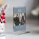 Améliorez votre décor mariage avec notre chic Dusty bleu et blanc Mariage Lettré Numéro de table. Cette élégante carte de table comporte des noms personnalisés dans une police de caractères blanc et sophistiquée, ajoutant une touche de classe à votre journée spéciale. Le numéro et la date du tableau sont magnifiquement rendus en typographie blanche sans-serif, assurant à la fois clarté et style. Montrez votre photo préférée dans une orientation horizontale contre un arrière - plan bleu poussiéreux chic, créant un design visuellement étonnant et mémorable. Parfait pour tout thème mariage, cette carte de table personnalisée est conçue pour impressionner vos invités et élever votre mariage.