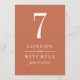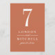 La carte de numéro de table en cuivre orange et en mariage blanc intemporelle est dotée d'une très belle typographie qui combine un script de calligraphie florissant avec un lettrage en bloc classique. Le monogramme personnalisé et le numéro de table peuvent être entièrement personnalisés pour votre jour de mariage. Notez que chaque carte de numéro de table doit être customisée et ajoutée individuellement au panier d'achat (1,2,3...etc.). Veuillez acheter notre collection de Mariages en cuivre élégant classique pour coordonner les conceptions.