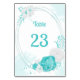 carte de numéro de table de couronne de fleurs turquoise et blanches romantiques.