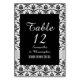 Chic traditionnel élégant moderne noir et blanc couleur vintage rétro damask personnalisé mariage ou numéro de table d'occasion spécial sur arrière - plan noir. , personnalisez avec votre texte aux modèles pour vos occasions spéciales ou célébrations. Visitez le magasin de _MARIAGES PERSONNALISÉ pour trouver des produits correspondants.