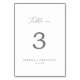 Ce délicat numéro de table de calligraphie argentée est parfait pour un mariage moderne. Le design minimaliste romantique présente une belle et élégante typographie gris argenté sur un arrière - plan blanc au look épuré et simple. La carte s'imprime à l'avant et à l'arrière (double face). Les articles sont imprimés exactement comme ils apparaissent sur votre écran lorsque vous ajoutez au panier, donc personnalisez et ajoutez chaque numéro de table dont vous avez besoin à votre panier individuellement.