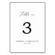 Ce délicat numéro de table de calligraphie noire est parfait pour un mariage moderne. Le design minimaliste romantique présente une belle et élégante typographie noire sur un arrière - plan blanc au look épuré et sobre. La carte s'imprime à l'avant et à l'arrière (double face). Les articles sont imprimés exactement comme ils apparaissent sur votre écran lorsque vous ajoutez au panier, donc personnalisez et ajoutez chaque numéro de table dont vous avez besoin à votre panier individuellement.