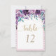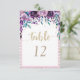 Numéro de table de mariage à fleurs de Champagne violet or et rayures Confettis Aquarelle Fleurs avec police de script à pinceau tendance ! Découvrez ma boutique pour voir toute la suite de mariage pour ce design !
