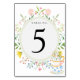 Numéro de table de fête du thé de fleurs sauvages