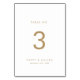 Ce numéro de table de typographie or chic est parfait pour un mariage moderne. Le design simple présente une typographie classique minimaliste d'or et de blanc, dans un style boho rustique. Personnalisable dans n'importe quelle couleur. Gardez le design minimal et élégant, en l'état, ou personnalisez-le en ajoutant vos propres graphiques et artwork. La carte s'imprime à l'avant et à l'arrière (double face). Les articles sont imprimés exactement comme ils apparaissent sur votre écran lorsque vous ajoutez au panier, donc personnalisez et ajoutez chaque numéro de table dont vous avez besoin à votre panier individuellement.