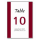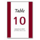 Cartes de numéro de table de mariage avec des bandes bordeaux, modifier le texte et même les couleurs