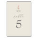 Ce numéro de table de mariage allie charme rustique et sophistication élégante, avec une touche moderne. Orné d'un monogramme floral printanier à l'aquarelle en haut, le design est mis en valeur par une écriture gris clair qui ajoute une touche de sophistication. Parfait pour une célébration sur le thème des fleurs sauvages, il apporte une atmosphère chaleureuse et contemporaine à votre disposition de table.