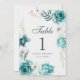Guidez les invités à leurs sièges avec notre charmant numéro de table de Mariage Fleur sauvage Turquoise & Off-White. Ces numéros de table élégants marient le charme bohème à l'élégance florale romantique, créant ainsi un point de convergence captivant pour votre décor de réception de mariage. Avec une illustration turquoise et turquoise des fleurs, ces numéros de table ajoutent une touche fantaisiste à votre paysage de table.