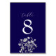 Élégant et moderne, ce numéro de table de mariage bleu royal présente des illustrations florales argentées délicates et une calligraphie gracieuse pour un style intemporel. Parfait pour les réceptions de mariage hivernales ou formelles, il ajoute une touche de style raffiné et aide les invités à trouver leur place avec facilité.